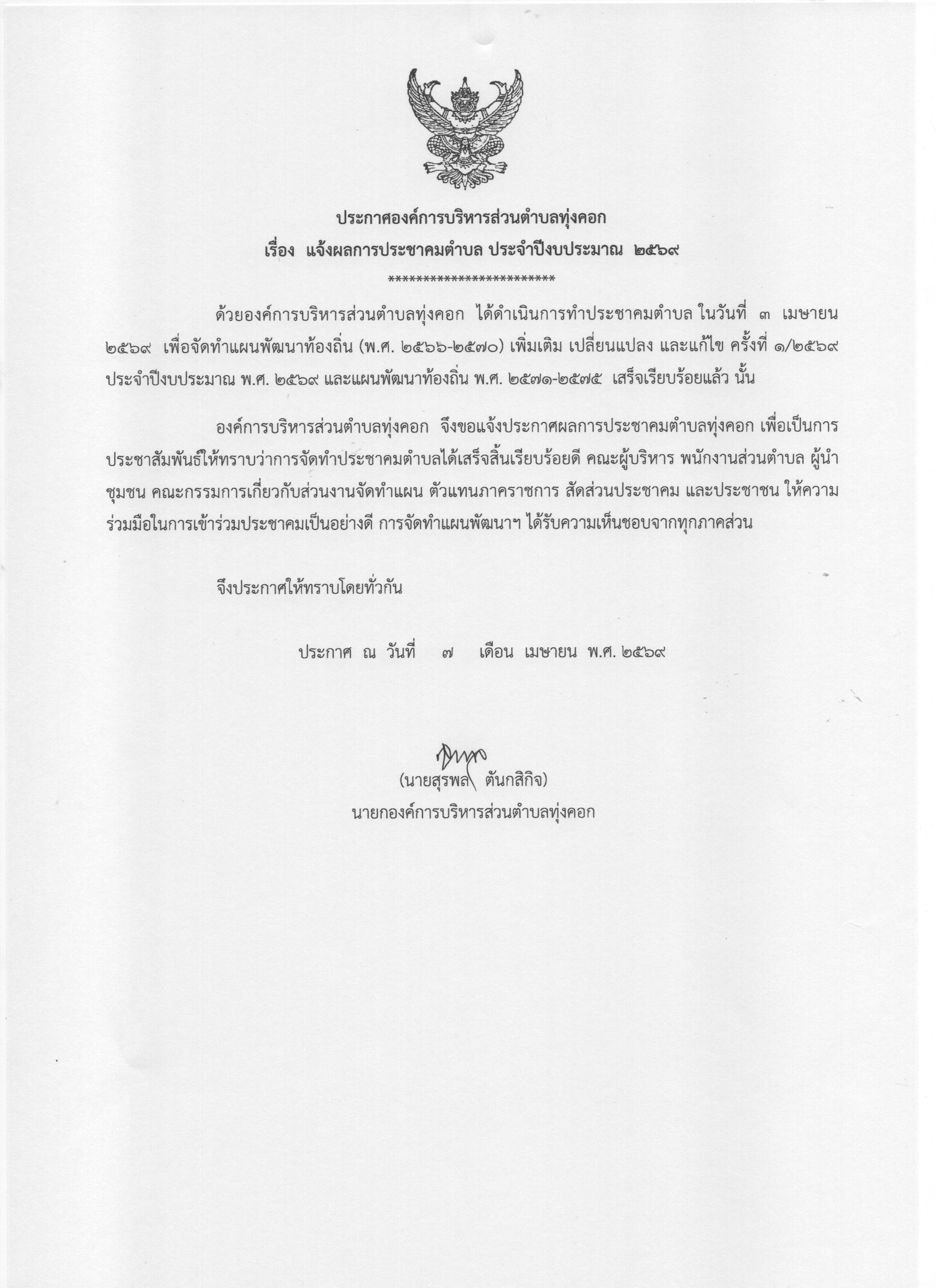 อบต.ทุ่งคอก จัดประชาคมตำบล เมื่อวันที่ 3 เมษายน 2569 เสร็จเรียบร้อยดี ได้รับความร่วมมือจากประชาชน และทุกภาคส่วน