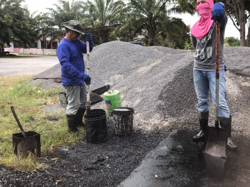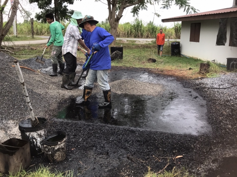 เจ้าหน้าทำการมิกซ์ผสมยาง+หินต่างๆ